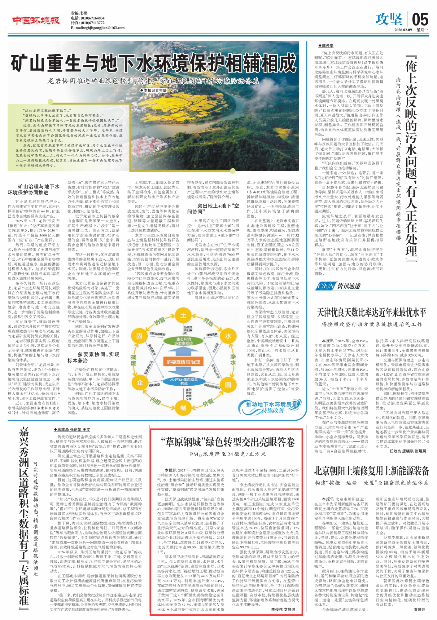 2026年2月9日,《中國(guó)環(huán)境報(bào)》第5版刊發(fā)題為《“草原鋼城”綠色轉(zhuǎn)型交出亮眼答卷 PM2.5濃度降至24微克/立方米》的文章,報(bào)道了2025年,內(nèi)蒙古自治區(qū)包頭市持續(xù)深入打好污染防治攻堅(jiān)戰(zhàn),聚焦大氣、水、土壤污染防治主戰(zhàn)場(chǎng),通過(guò)實(shí)施系統(tǒng)治理“組合拳”,推動(dòng)環(huán)境質(zhì)量實(shí)現(xiàn)歷史性突破,“草原鋼城”煥發(fā)出綠色發(fā)展的蓬勃生機(jī)。