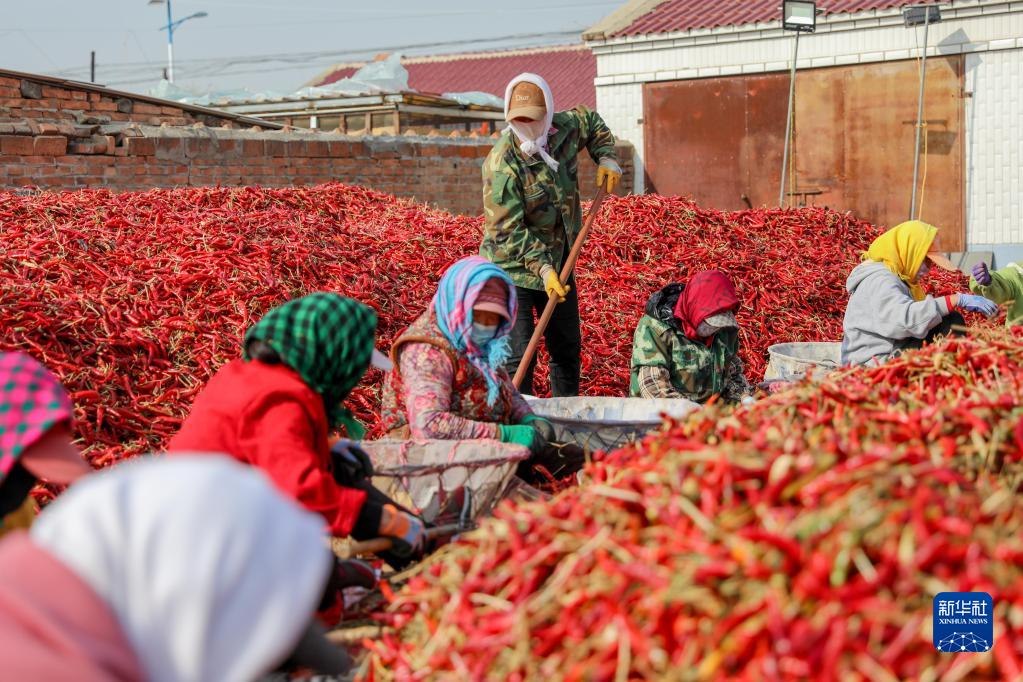 近日,內蒙古通遼市開魯縣迎來紅干椒收獲銷售旺季。開魯縣紅干椒皮紅肉厚、品質優(yōu)良,產品暢銷國內外市場。近年來,開魯縣紅干椒種植面積穩(wěn)定在60萬畝。新華社記者 連振 攝