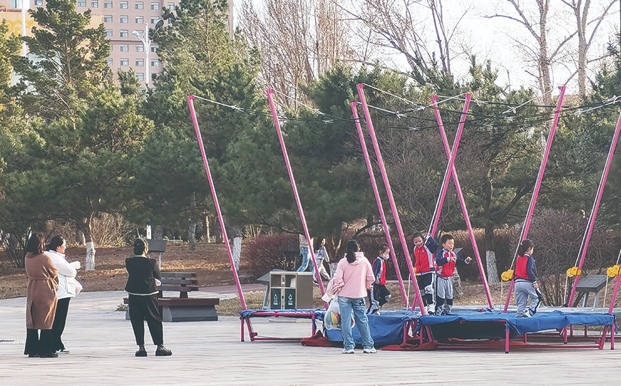 市民帶著孩子在戶(hù)外玩耍 張玥 攝
