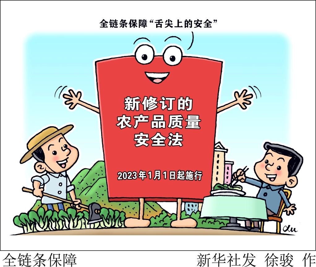 新版農產品質量安全法自1月1日起施行,實施農產品質量安全承諾達標合格證制度,與食品安全法銜接,實現(xiàn)從田間地頭到百姓餐桌的全過程、全鏈條監(jiān)管。