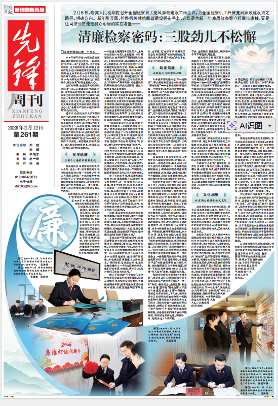 2026年2月12日《檢察日?qǐng)?bào)》05版刊發(fā)了《清廉檢察密碼:三股勁兒不松懈》的文章,報(bào)道了新年剛開(kāi)局,各地檢察機(jī)關(guān)就把廉政建設(shè)抓在手上,這既是為新一年高質(zhì)效辦案守好廉潔底線,更是讓司法公正走進(jìn)群眾心里的實(shí)在考量,并特別報(bào)道了內(nèi)蒙古自治區(qū)敖漢旗檢察院“開(kāi)年第一課”,讓“廉潔修身、廉潔辦案”的理念直抵人心。