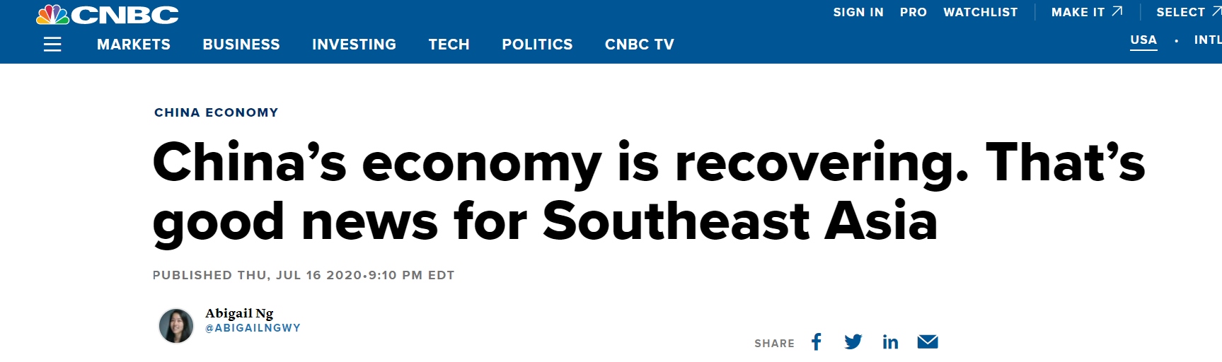 美國消費者新聞與商業(yè)頻道(CNBC)17日發(fā)表文章,題為《中國經(jīng)濟(jì)正在復(fù)蘇,這對東南亞是個好消息》。文中指出,作為東盟出口商品最多的國家,中國經(jīng)濟(jì)穩(wěn)步增長成為東南亞國家“關(guān)鍵資產(chǎn)”?!氨M管還有許多挑戰(zhàn),這一增長重新點燃了中國經(jīng)濟(jì)可以幫助其他國家復(fù)蘇的希望”,華僑銀行(OCBC Bank)經(jīng)濟(jì)學(xué)家維蘭托(Wellian Wiranto)16日表示。
