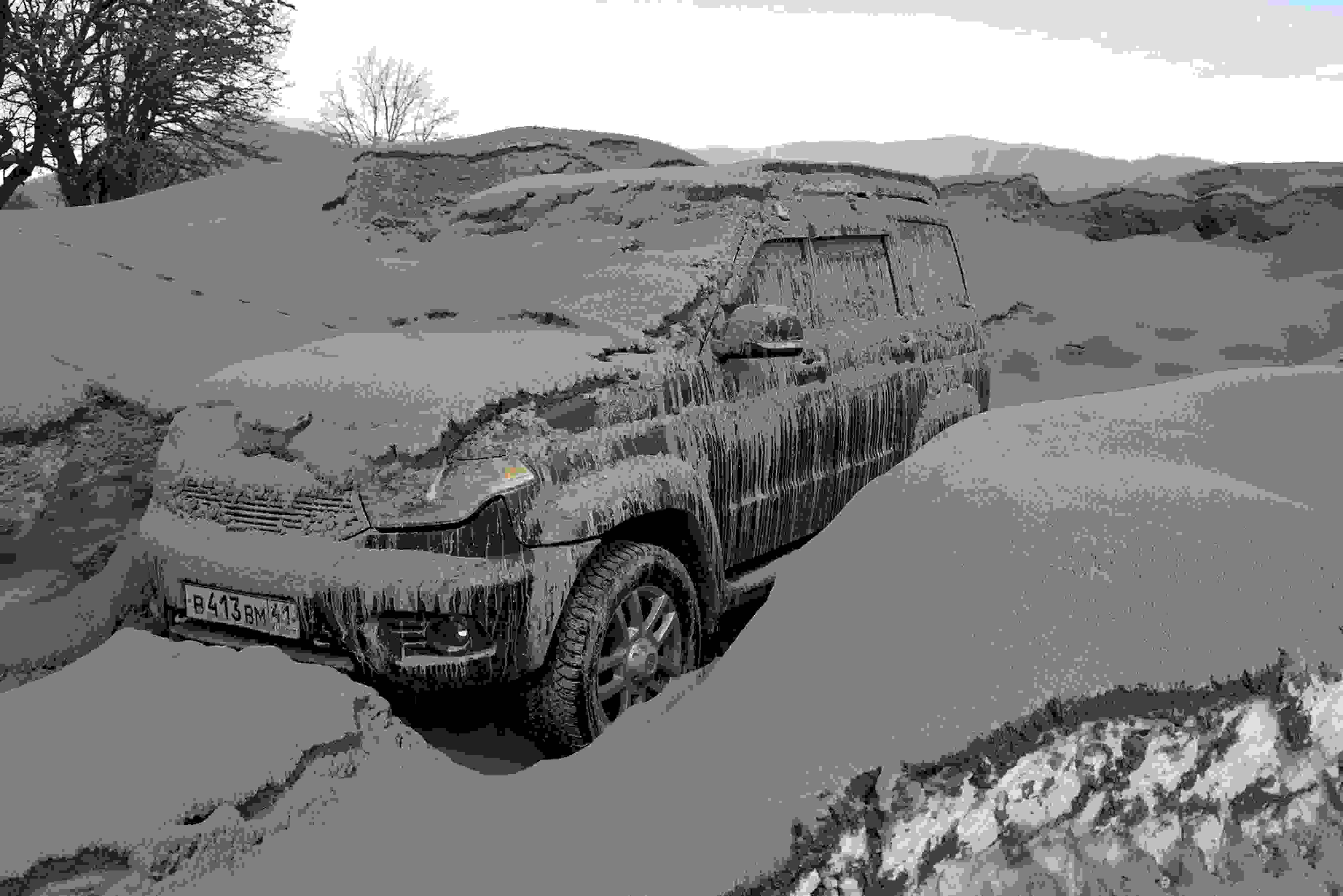 當(dāng)?shù)貢r(shí)間2023年4月12日,俄羅斯勘察加半島,希韋盧奇火山噴發(fā)后,周邊村莊被火山灰覆蓋。希韋盧奇是堪察加半島最大的火山之一,海拔3283米。 視覺(jué)中國(guó)