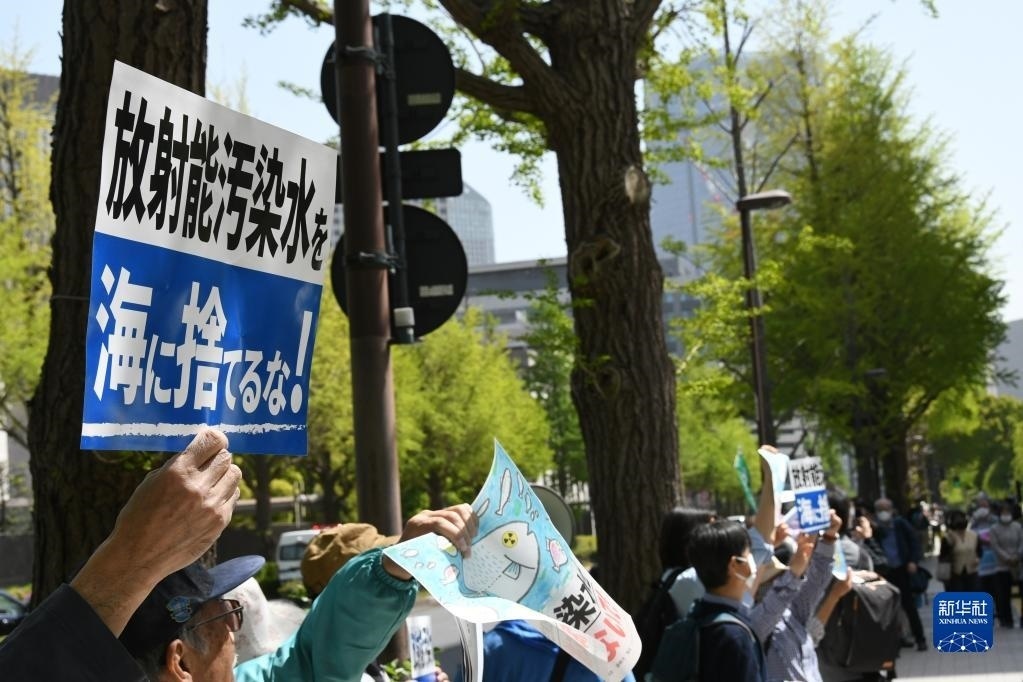 新華社東京4月13日電 特寫:“核污染水的處理不能由日本政府擅作主張”——日本民眾集會抗議核污染水排海計劃