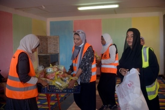 5月2日,在埃及南部阿斯旺省,工作人員為逃離蘇丹進入埃及的難民準備救濟包裹。新華社發(fā)(拉德萬攝)