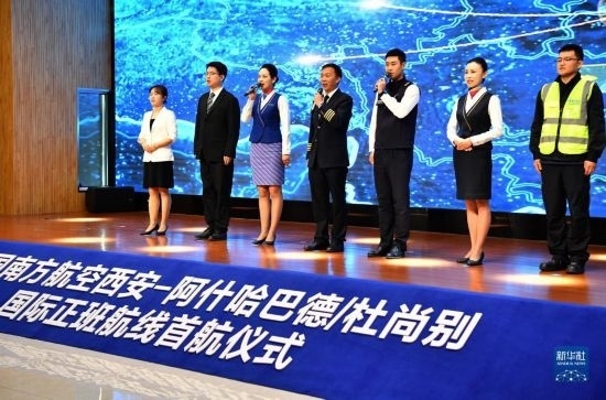 5月13日,西安-阿什哈巴德/杜尚別國際正班航線首航儀式在西安舉行。