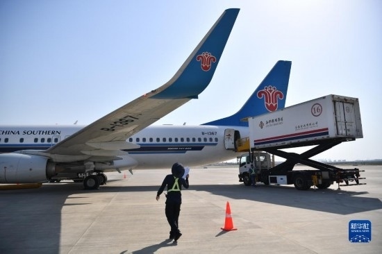 5月13日,西安-烏魯木齊-阿什哈巴德首趟航班在進行飛行前的準備工作。