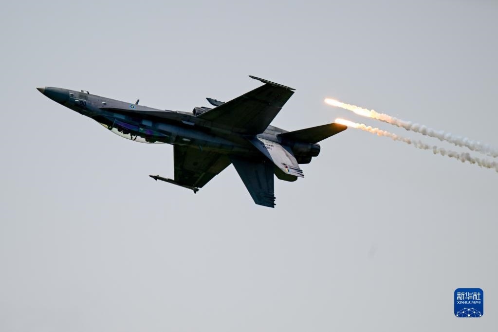 5月25日,在馬來西亞蘭卡威舉行的第16屆蘭卡威國際海事和航空展上,一架馬來西亞皇家空軍的F/A-18D戰(zhàn)機(jī)進(jìn)行表演。