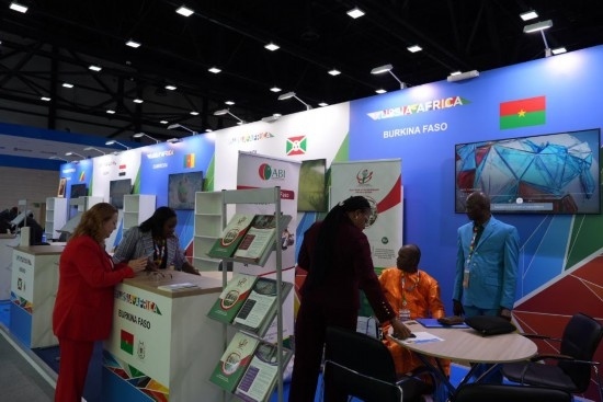 這是7月27日在俄羅斯圣彼得堡拍攝的俄非峰會非洲國家展臺。新華社記者安曉萌攝