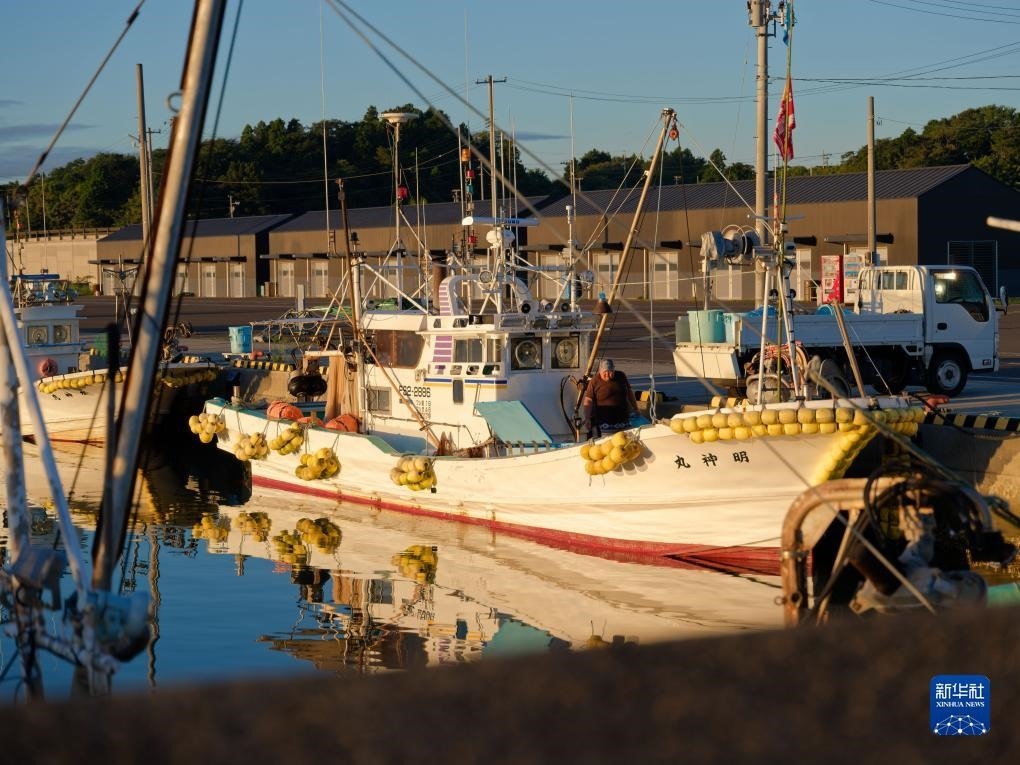 8月23日,在日本福島縣新地町的漁港,漁民捕魚(yú)歸來(lái)。新華社記者 張笑宇 攝