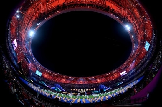 10月8日,演員在閉幕式上表演。當(dāng)日,杭州第19屆亞洲運動會閉幕式在杭州奧體中心體育場舉行。(新華社記者黃宗治攝)