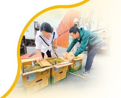 “針對水果等生鮮農(nóng)產(chǎn)品特點,我們采取7×24小時預約通關,設置農(nóng)食產(chǎn)品專用窗口,優(yōu)先辦理鮮活易腐農(nóng)產(chǎn)品接單、放行業(yè)務,并采取即到即檢即放模式,確保進口水果通關零延遲?!臂屡D海關關長韓斌說。