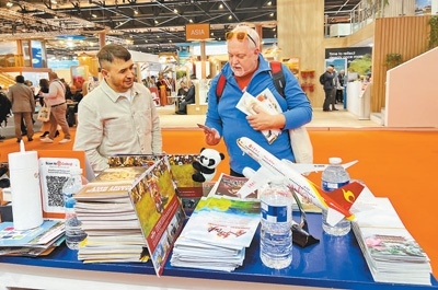 記者看到,中國展區(qū)以國寶大熊貓為主推形象,融合中國紅、祥云紋、竹子等特色元素,展示了中國旅游的獨特魅力。在3天的活動中,中國展區(qū)重點推介了“你好!中國”赴華旅游線路,以及京粹文化、“中國入境旅游第一站”上海、“古絲綢之路起點”陜西、“千湖之省”湖北等旅游產(chǎn)品。