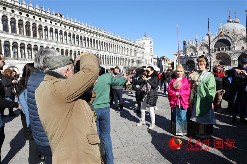 隊伍到達圣馬可廣場后,活動正式開始。出席活動的中國駐米蘭總領事劉侃表示,活動為威尼斯狂歡節(jié)增添了中國文化元素,是不同文明交流互鑒的生動體現(xiàn)。威尼斯副市長瑪爾表示,感謝華人為當?shù)厣鐣l(fā)展所作貢獻,表示將進一步發(fā)展與蘇州的友好關系。
