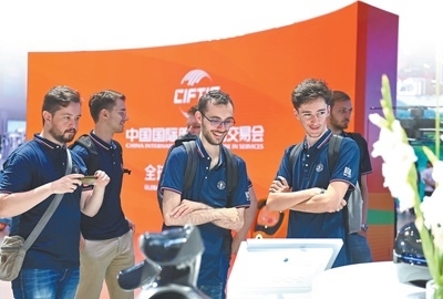 北京交通大學留學生在北京國家會議中心參觀2023年中國國際服務貿易交易會。胡慶明攝(影像中國)