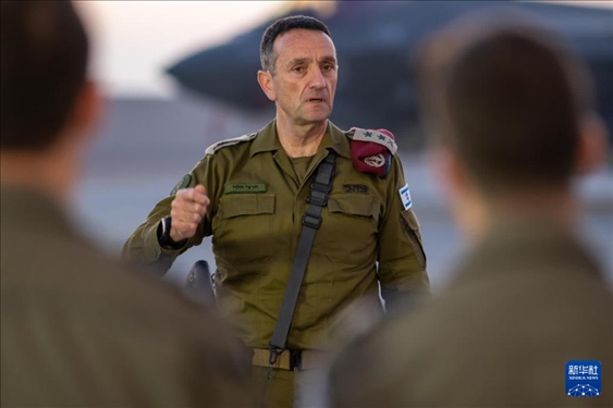 4月15日,以色列國(guó)防軍總參謀長(zhǎng)哈萊維在以色列南部的內(nèi)瓦提姆空軍基地講話。新華社發(fā)(以色列國(guó)防軍供圖)