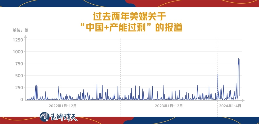 檢索美媒同時(shí)提及“中國”“產(chǎn)能過剩”的報(bào)道,從數(shù)量變化中,可以看出,所謂中國“產(chǎn)能過剩”的話題,從2022年就已經(jīng)開始。