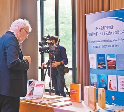 5月3日,中國社會科學出版社“理解中國”叢書法文版圖書揭幕儀式在法國巴黎舉行。圖為現(xiàn)場嘉賓在展位前駐足了解相關(guān)圖書。本報記者 楊 一攝