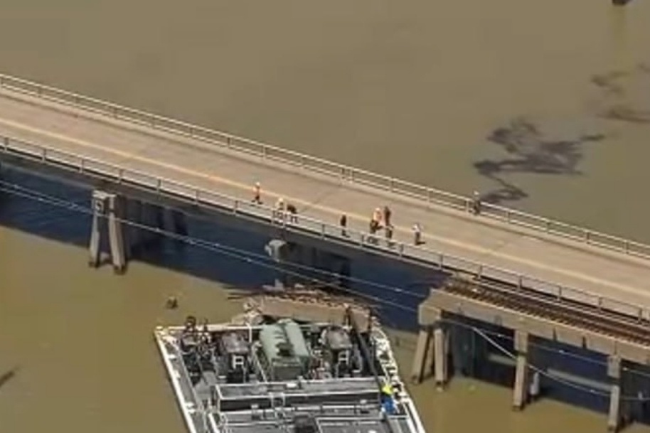 據(jù)美聯(lián)社報道,當(dāng)?shù)貢r間5月15日,在美國得克薩斯州加爾維斯頓,一艘駁船撞上了一座橋梁,導(dǎo)致與橋梁并行的部分鐵路路段坍塌,駁船上的石油泄漏至周圍水域。目前事故現(xiàn)場道路已被關(guān)閉。