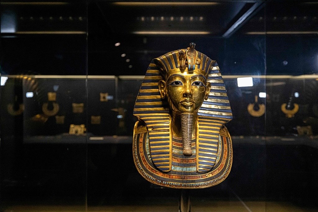 埃及博物館展出了古埃及新王國法老圖坦卡蒙(公元前1334-1325年)的黃金墓葬面具