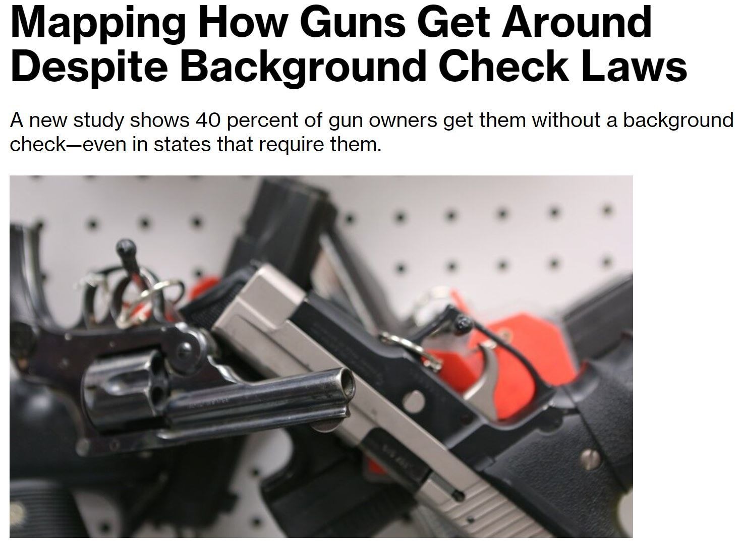 △彭博社報(bào)道:據(jù)統(tǒng)計(jì),美國至少有40%的購槍者無需通過背景審查。