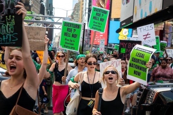 2022年7月4日,墮胎權支持者在美國紐約舉行示威游行。美國聯(lián)邦最高法院6月24日推翻近半個世紀前在聯(lián)邦層面確立墮胎權的判例“羅訴韋德案”,取消對女性墮胎權的憲法保護,引發(fā)廣泛爭議。新華社發(fā)(郭克攝)