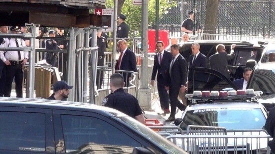這張4月15日的視頻截圖顯示,美國前總統(tǒng)特朗普抵達紐約曼哈頓一家刑事法院出庭,出席關于其在2016年涉嫌偽造商業(yè)記錄以掩蓋向一名女演員支付“封口費”一案的審理。新華社記者丁曄攝