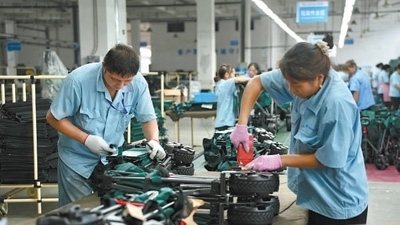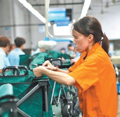 60多公里外的駐馬店市平輿縣產(chǎn)業(yè)集聚區(qū)里,戶外休閑用品加工企業(yè)內(nèi)一派繁忙景象。河南泰普森休閑用品有限公司車間正緊鑼密鼓地生產(chǎn)折疊桌椅、帳篷、戶外小拉車等產(chǎn)品?!斑@些是歐洲的訂單?!惫究偨?jīng)理王小奇指著眼前正在包裝的產(chǎn)品說,“今年市場(chǎng)需求旺盛,訂單已經(jīng)排到年底了。我們加足馬力生產(chǎn),一條流水線的日產(chǎn)量已超過1000套?!?/P>