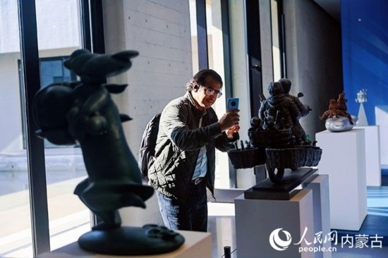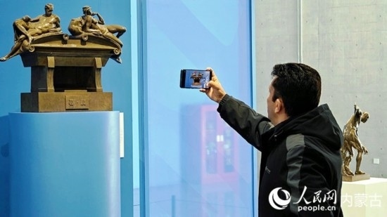 外媒記者走進(jìn)呼和浩特雕塑藝術(shù)館。丁根厚攝
