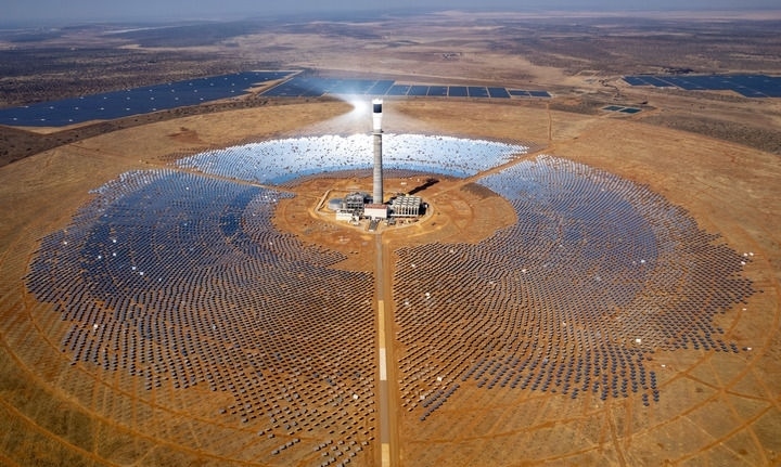 這是2024年8月20日在南非北開(kāi)普省拍攝的南非紅石100兆瓦塔式熔鹽光熱電站項(xiàng)目(無(wú)人機(jī)照片)。由中國(guó)電建集團(tuán)山東電建三公司承建的南非紅石100兆瓦塔式熔鹽光熱電站項(xiàng)目是撒哈拉以南非洲首個(gè)塔式熔鹽光熱電站項(xiàng)目,也是南非最大可再生能源投資項(xiàng)目之一。新華社記者 張譽(yù)東 攝