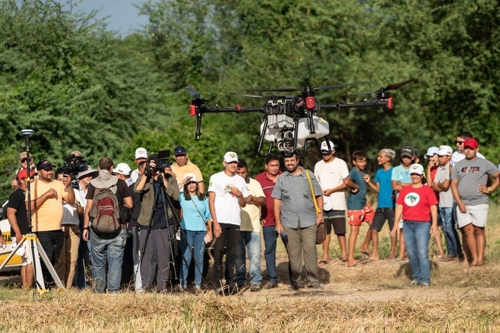 2024年2月2日,在巴西阿波迪,人們觀看一款中國(guó)生產(chǎn)的農(nóng)用無(wú)人機(jī)。當(dāng)日,中巴農(nóng)業(yè)機(jī)械化合作示范項(xiàng)目啟動(dòng)儀式在巴西阿波迪舉行,第一批來(lái)自中國(guó)7家農(nóng)機(jī)企業(yè)共31臺(tái)(件)設(shè)備正式交付給巴西農(nóng)村勞動(dòng)者組織。新華社記者 王天聰 攝