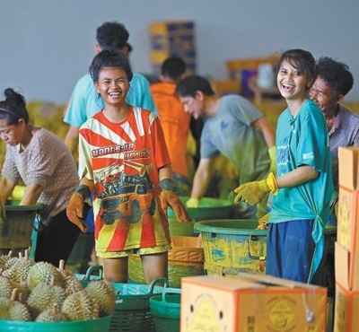 榴蓮是中國第一大水果進(jìn)口品類。據(jù)統(tǒng)計(jì),2023年中國進(jìn)口142.6萬噸鮮榴蓮,其中92.9萬噸來自泰國。中國市場(chǎng)的強(qiáng)勁需求,帶動(dòng)了泰國水果產(chǎn)業(yè)發(fā)展。泰國商業(yè)部數(shù)據(jù)顯示,2024年尖竹汶府的榴蓮產(chǎn)量預(yù)計(jì)突破56萬噸,同比增長(zhǎng)超4.3%。同時(shí),山竹、龍宮果等熱帶水果的產(chǎn)量也迎來了快速增長(zhǎng)?!拔彝扑]了不少親朋好友來水果加工廠上班,收入有保障,旺季的提成更是豐厚!”猜維開心地說。