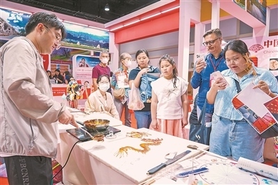 第三十屆泰國國際旅游展日前在曼谷舉行,吸引了來自不同國家和地區(qū)的680多個旅游機構、企業(yè)參展。中國以主賓國身份受邀參展,是展位最多的國家。本屆展會上,中國展區(qū)以“你好!中國”為主題,來自貴州、河南、浙江等6個省的文旅機構和國航、南航等12家中國航司共同展示了中國最新的優(yōu)質(zhì)旅游產(chǎn)品服務及精品線路。中國展區(qū)還設置了剪紙、面塑、糖畫等傳統(tǒng)技藝展示項目。