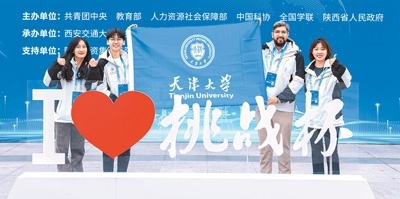 天津大學(xué)馬來西亞籍學(xué)生陳勁詠(左二)與同學(xué)參加第十四屆挑戰(zhàn)杯全國總決賽。