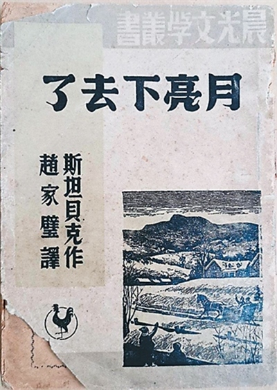 趙家璧在20世紀(jì)30年代就對(duì)美國(guó)文學(xué)很感興趣,讀過(guò)斯坦貝克的《人鼠之間》《憤怒的葡萄》。1942年,他在桂林看到了《月亮下去了》,很快就讀完了,作品中侵略者的橫行霸道,淪陷區(qū)人民的不屈抵抗,讓他覺得這講的簡(jiǎn)直就是中國(guó)淪陷區(qū)的事,遂對(duì)作品全文進(jìn)行了翻譯。該譯本問(wèn)世后再版多次,影響了一代又一代讀者。