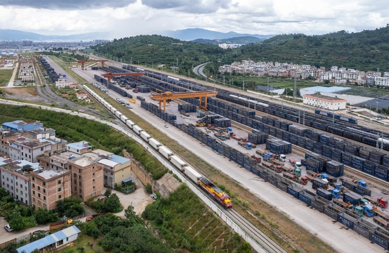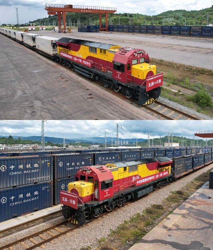 當(dāng)日,中老鐵路國際貨物列車(玉溪—萬象)實(shí)現(xiàn)雙向開行。中老鐵路自2021年12月開通以來,截至今年7月底,運(yùn)輸貨物超6450萬噸,其中跨境貨物突破1490萬噸。