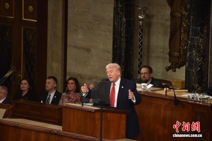 當(dāng)?shù)貢r間2月24日晚,美國總統(tǒng)特朗普在國會參眾兩院聯(lián)席會議上發(fā)表國情咨文講話,聚焦經(jīng)濟、移民等議題。這是特朗普在本總統(tǒng)任期內(nèi)首次發(fā)表國情咨文。 記者 沙晗汀 攝