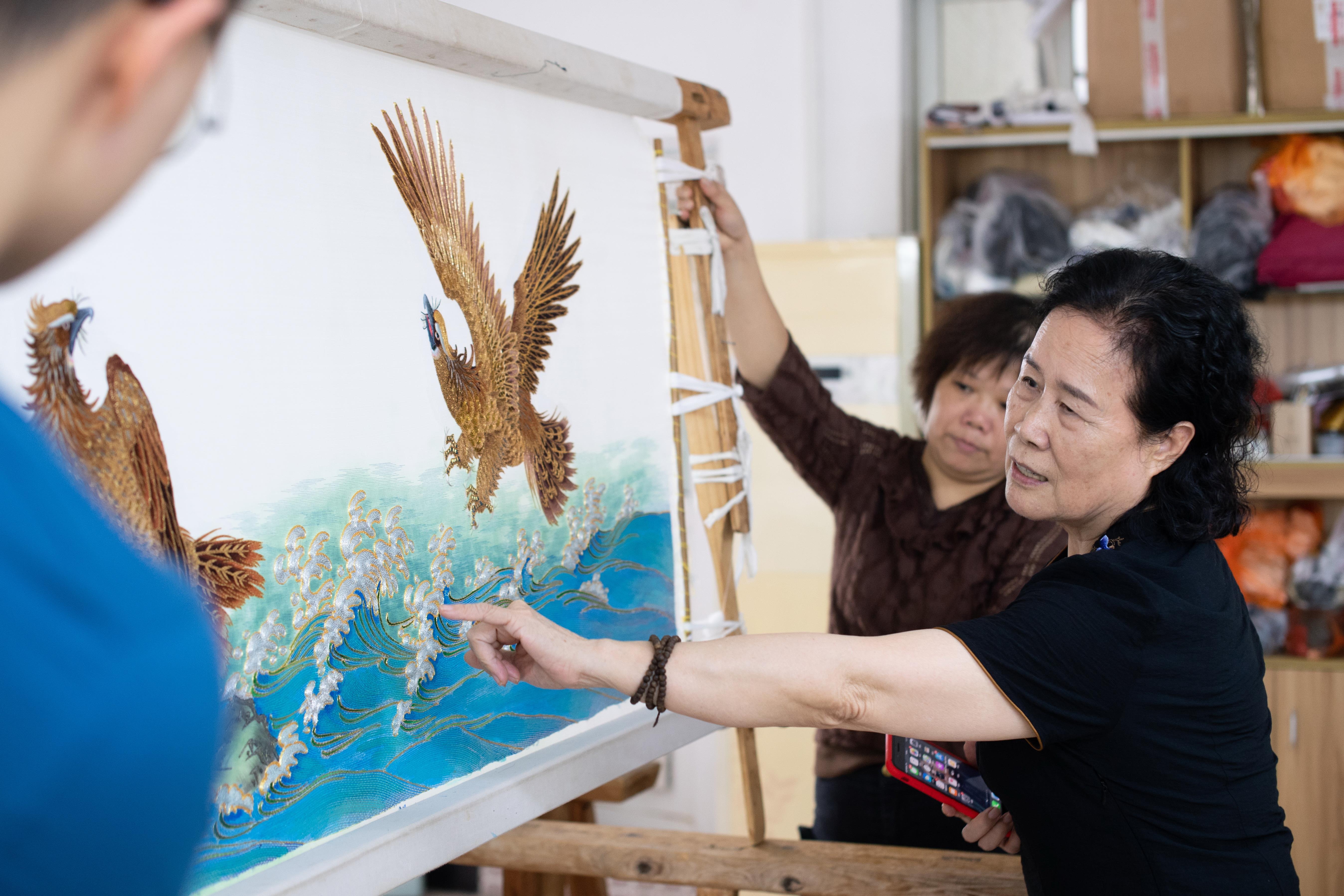 “2015年,我參加了聯(lián)合國(guó)舉辦的一個(gè)展覽,被授予‘文化大使’的稱號(hào),為潮繡爭(zhēng)了光?!被貞浲?,康惠芳有些激動(dòng),“沒(méi)有國(guó)家的強(qiáng)大,不可能有這樣的舞臺(tái)展示我們的民間技藝,衷心感謝國(guó)家對(duì)我們這些非遺傳承人的重視。”