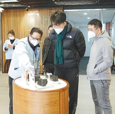江蘇分社記者王偉健(右一)和白光迪(右二)在江蘇省無錫市新吳區(qū)索尼數(shù)字產(chǎn)品(無錫)有限公司采訪。祝 林?jǐn)z