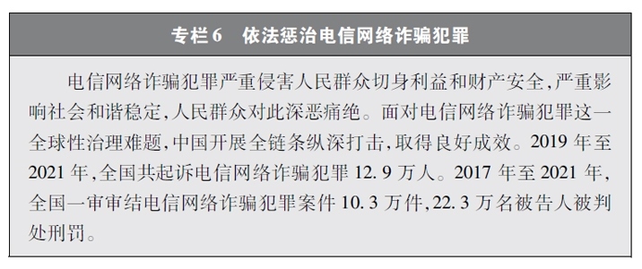 守護公民財產(chǎn)安全。持續(xù)加大立法保護力度,遏制利用網(wǎng)絡侵犯財產(chǎn)權益的行為。2018年出臺電子商務法,規(guī)定電子商務經(jīng)營者銷售的商品或者提供的服務應當符合保障人身、財產(chǎn)安全的要求。民法典明確利用網(wǎng)絡侵害他人財產(chǎn)權益的行為應當承擔相應法律責任。2022年出臺反電信網(wǎng)絡詐騙法,為打擊電信網(wǎng)絡詐騙活動提供有力法律支撐,切實維護人民群眾的財產(chǎn)權益。