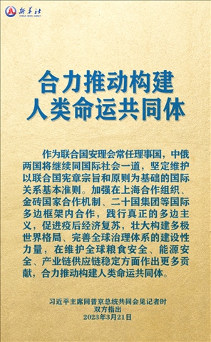 3月20日,習(xí)近平主席在《俄羅斯報(bào)》和俄新社網(wǎng)站上發(fā)表的署名文章中,回顧了構(gòu)建人類(lèi)命運(yùn)共同體理念的發(fā)展歷程。