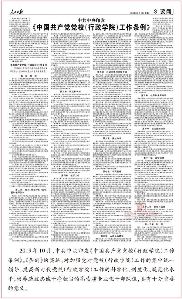 黨校事業(yè)是黨的事業(yè)的重要組成部分。從中央到地方建立黨校體系,專(zhuān)門(mén)教育培訓(xùn)干部,是我們黨的一大政治優(yōu)勢(shì)。黨的十八大以來(lái),習(xí)近平總書(shū)記高度重視黨校工作。從為黨內(nèi)“關(guān)鍵少數(shù)”講授“開(kāi)班第一課”,與縣委書(shū)記研修班學(xué)員座談交流,到連續(xù)6次出席中青年干部培訓(xùn)班開(kāi)班式并發(fā)表重要講話;從出席全國(guó)黨校工作會(huì)議并發(fā)表重要講話,指引做好新形勢(shì)下的黨校工作,到部署深化黨和國(guó)家機(jī)構(gòu)改革,組建新的中央黨校(國(guó)家行政學(xué)院),制定、實(shí)施《中國(guó)共產(chǎn)黨黨校(行政學(xué)院)工作條例》,習(xí)近平總書(shū)記對(duì)黨校工作傾注了大量心血。在總書(shū)記親切關(guān)懷下,中央黨校和全國(guó)各級(jí)黨校牢記“黨校姓黨”這個(gè)立校之本,不斷提高辦學(xué)質(zhì)量和水平,在為黨育才、為黨獻(xiàn)策上作出了新的貢獻(xiàn)。