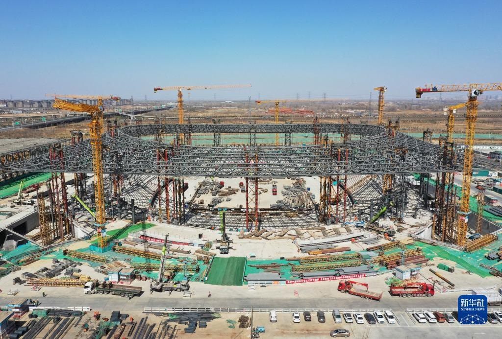 這是位于雄安新區(qū)啟動(dòng)區(qū)的雄安體育中心項(xiàng)目現(xiàn)場(chǎng)(2023年3月15日攝,無(wú)人機(jī)照片)。新華社記者 朱旭東 攝