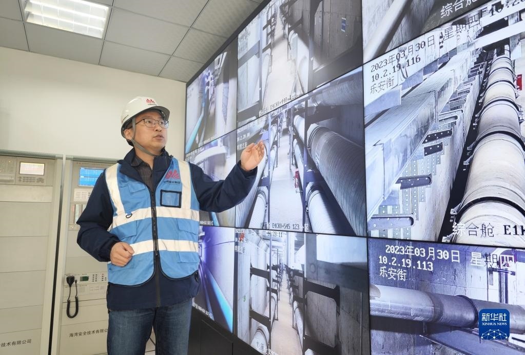 工作人員在雄安容東地下管廊監(jiān)控室工作(2023年3月30日攝)。新華社記者 朱旭東 攝