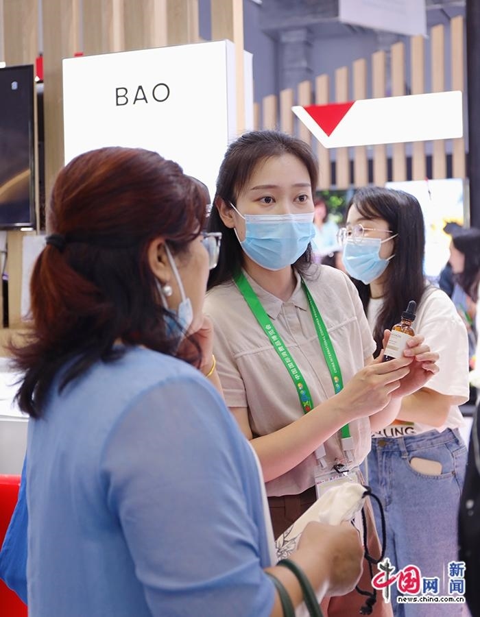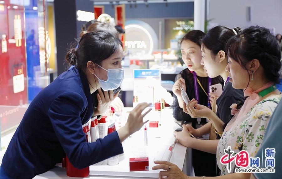 4月11日,工作人員為觀眾介紹護(hù)膚產(chǎn)品。中國網(wǎng)記者 吳亮 攝