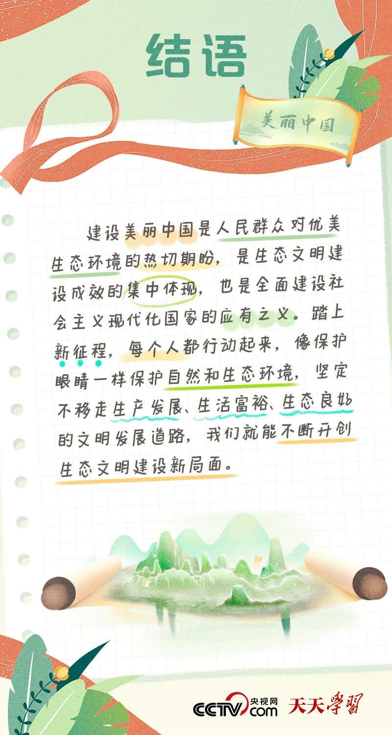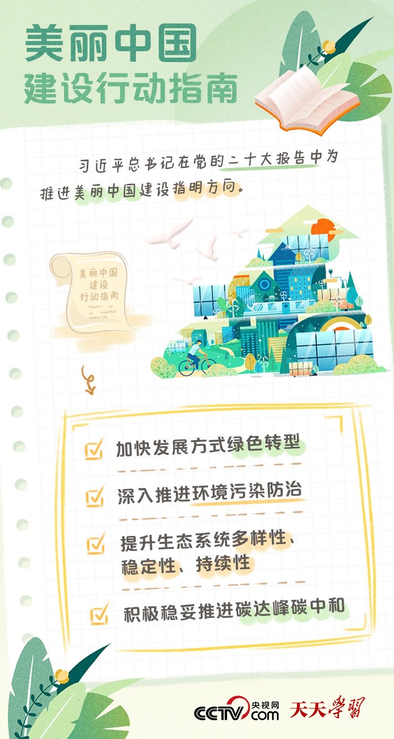 黨的十八大以來(lái),以習(xí)近平同志為核心的黨中央以前所未有的力度抓生態(tài)文明建設(shè),全黨全國(guó)推動(dòng)綠色發(fā)展的自覺(jué)性和主動(dòng)性顯著增強(qiáng),美麗中國(guó)建設(shè)邁出重大步伐。黨的二十大為美麗中國(guó)建設(shè)擘畫新藍(lán)圖:我們要推進(jìn)美麗中國(guó)建設(shè),堅(jiān)持山水林田湖草沙一體化保護(hù)和系統(tǒng)治理,統(tǒng)籌產(chǎn)業(yè)結(jié)構(gòu)調(diào)整、污染治理、生態(tài)保護(hù)、應(yīng)對(duì)氣候變化,協(xié)同推進(jìn)降碳、減污、擴(kuò)綠、增長(zhǎng),推進(jìn)生態(tài)優(yōu)先、節(jié)約集約、綠色低碳發(fā)展。一個(gè)天藍(lán)、地綠、水清的美麗中國(guó),漸行漸近。
