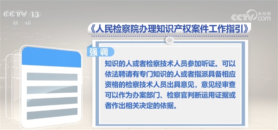 同時,《工作指引》強調(diào),遇有涉及國家秘密、商業(yè)秘密、個人隱私或者其他需要保密的情形,應(yīng)當(dāng)依利害關(guān)系人書面申請,采取組織訴訟參與人簽署保密承諾書、對秘密信息進行技術(shù)處理等必要的保密措施。針對知識產(chǎn)權(quán)案件技術(shù)性強的特點,根據(jù)案件需要,可以邀請有專門知識的人或者檢察技術(shù)人員參加聽證,可以依法聘請有專門知識的人或者指派具備相應(yīng)資格的檢察技術(shù)人員出具意見。意見經(jīng)審查可以作為辦案部門、檢察官判斷運用證據(jù)或者作出相關(guān)決定的依據(jù)。