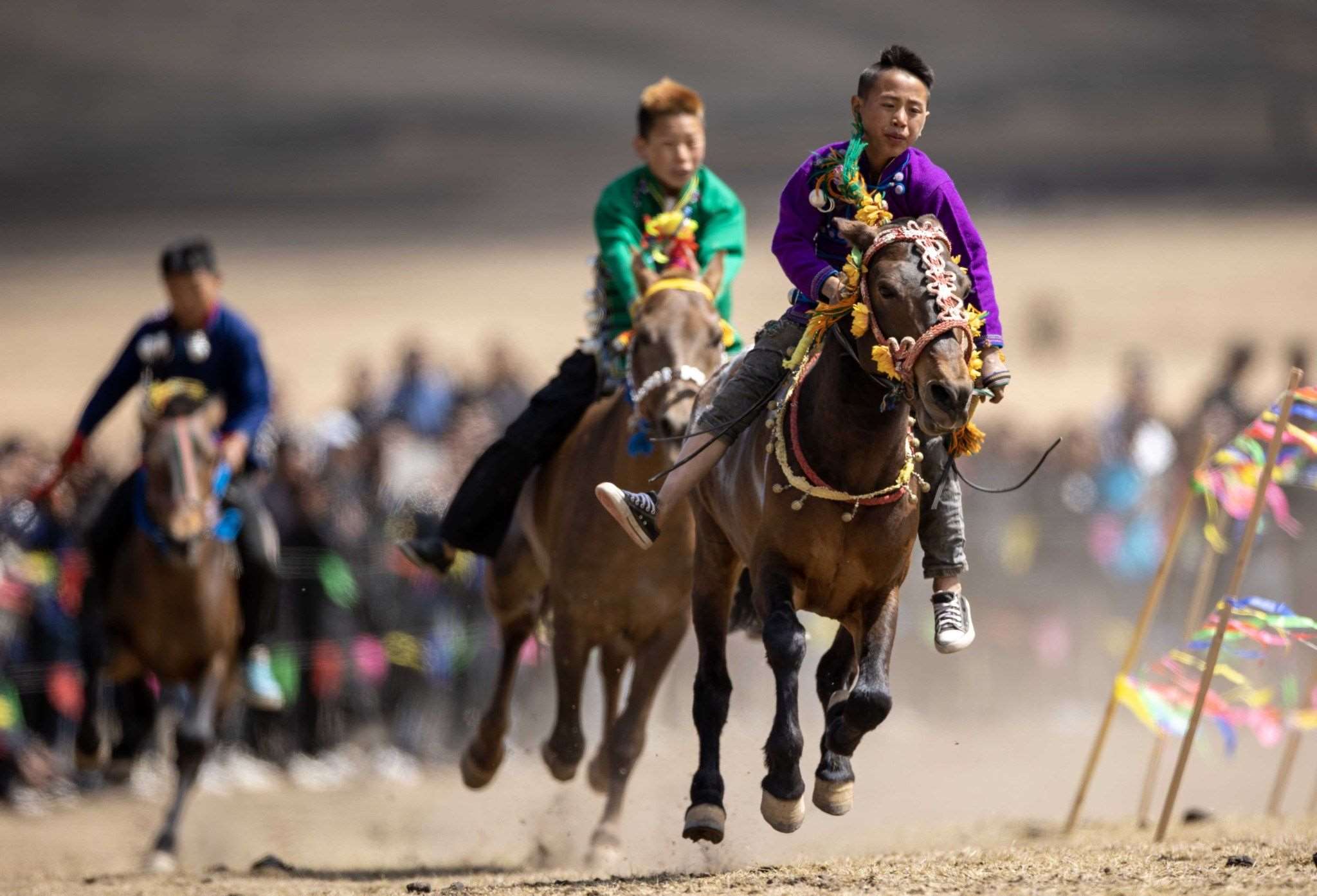 2023年4月25日,四川涼山,普格縣黎安鄉(xiāng)海口梁子,傳統(tǒng)的彝族賽馬比賽拉來帷幕。視覺中國