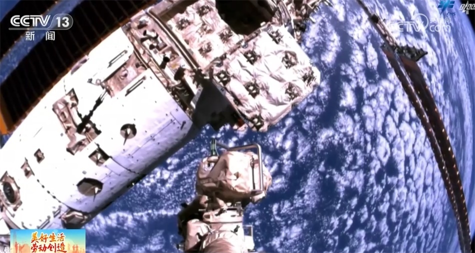 總臺(tái)央視記者 陶嘉樹:在我身后的就是天舟貨運(yùn)飛船,它整個(gè)的長(zhǎng)度是10.6米,整體分成兩個(gè)部分,下面比較小的這一部分是它的推進(jìn)艙,上面比較大的部分是它的貨物艙。天舟貨運(yùn)飛船總重13.5噸,從天舟六號(hào)開始,它的載貨量從以前的6.9噸提高到了7.4噸,是目前世界上運(yùn)貨能力最強(qiáng)的貨運(yùn)飛船之一。