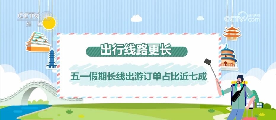 出行的人不僅多,出行的線路也更長了。今年,“五一”長線出游訂單占比近七成,比2019年高出6個百分點。